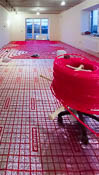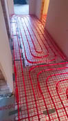 На первом этаже смонтирован водяной теплый пол Stout PEX-a 16x2.0, установлен коллектор теплого пола и смесительный узел, который предназначен для понижения температуры подачи теплоносителя в теплый пол.