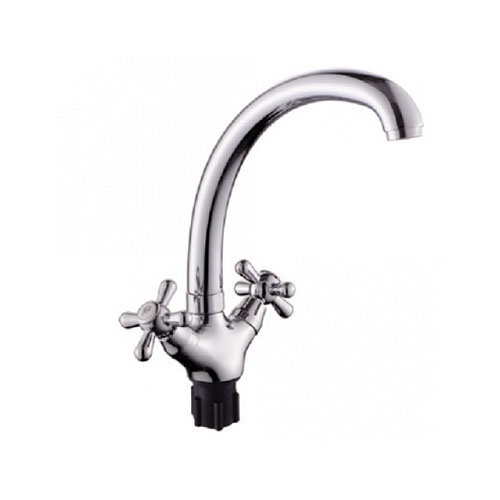 Двухвентильный смеситель для кухни с высоким изливом. Крепление гайка. Максимальное давление в системе водоснабжения 0.6 МПа. Рабочее давление 0.3 МПа. Покрытие хром.