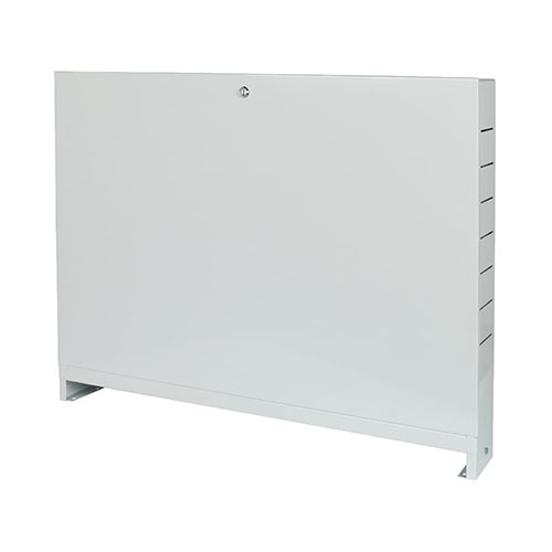 Коллекторный шкаф предназначен для установки в бойлерных жилых домов и технических помещениях зданий коммерческого назначения. Обеспечивает удобство размещения оборудования для разводки и управления системами водоснабжения и отопления. Изготовлен из оцинкованной стали, лицевые поверхности окрашены порошковой эмалью RAL9016. Шкаф устанавливается к стене. Выдвижные ножки позволяют регулировать высоту шкафа от 651 до 691 мм. В боковых стенках корпуса выполнена перфорация, сегменты которой удаляются в месте, удобном для пропуска присоединительных трубопроводов.