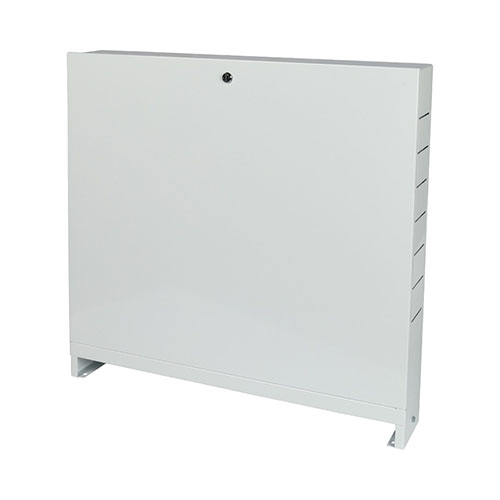 Коллекторный шкаф предназначен для установки в бойлерных жилых домов и технических помещениях зданий коммерческого назначения. Обеспечивает удобство размещения оборудования для разводки и управления системами водоснабжения и отопления. Изготовлен из оцинкованной стали, лицевые поверхности окрашены порошковой эмалью RAL9016. Шкаф устанавливается к стене. Выдвижные ножки позволяют регулировать высоту шкафа от 651 до 691 мм. В боковых стенках корпуса выполнена перфорация, сегменты которой удаляются в месте, удобном для пропуска присоединительных трубопроводов.