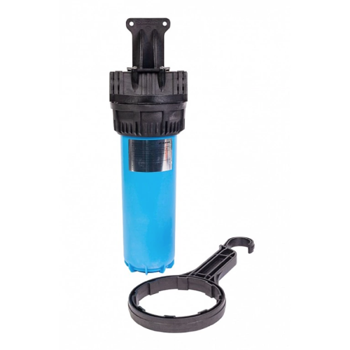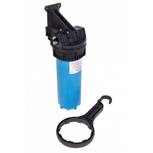 Корпус для фильтра предназначен для размещения в нем картриджных элементов-фильтров или фильтрующей засыпки для дальнейшей очистки холодной воды в бытовых условиях от механических частиц (ржавчины, песка, ила и другое), а также хлорорганических соединений, нефтепродуктов, пестицидов, тяжелых металлов, растворенного железа и иных органических и неорганических веществ. Представляет собой проточный фильтр воды, который подключается к водопроводу холодной воды для питьевого водоснабжения. Движение воды осуществляется в горизонтальном направлении с боковым подключением. В комплекте: корпус механического магистрального фильтра, крепежная планка, ключ.