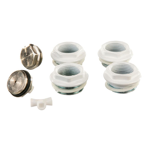 Универсальный комплект для монтажа радиаторов отопления Rommer. Подходит для всех типов радиаторов. В составе: переходник с 1" на 1/2" левый – 2 шт; переходник с 1" на 1/2" правый – 2 шт; заглушка 1/2" – 1 шт; воздушный клапан (Маевского) ручной – 1 шт; ключ для воздушного клапана (пластик) – 1шт.