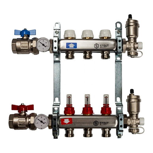 Главная страница Каталог товаров Арматура для котельной Коллекторы для теплого пола Stout Коллектор из нержавеющей стали в сборе с расходомерами Stout 3 контура — купить в Ярославле