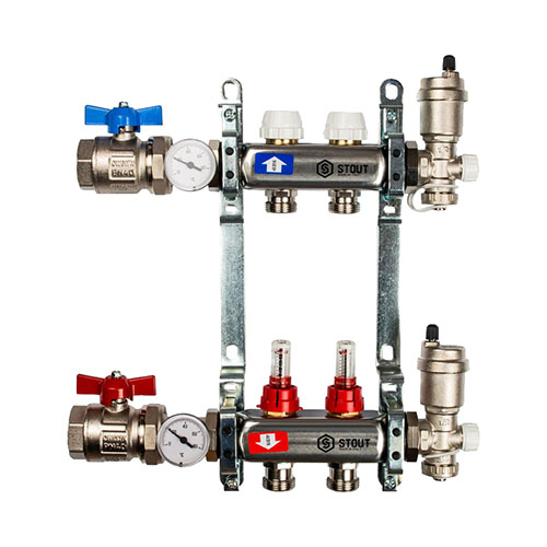 Главная страница Каталог товаров Арматура для котельной Коллекторы для теплого пола Stout Коллектор из нержавеющей стали в сборе с расходомерами Stout 2 контура — купить в Ярославле