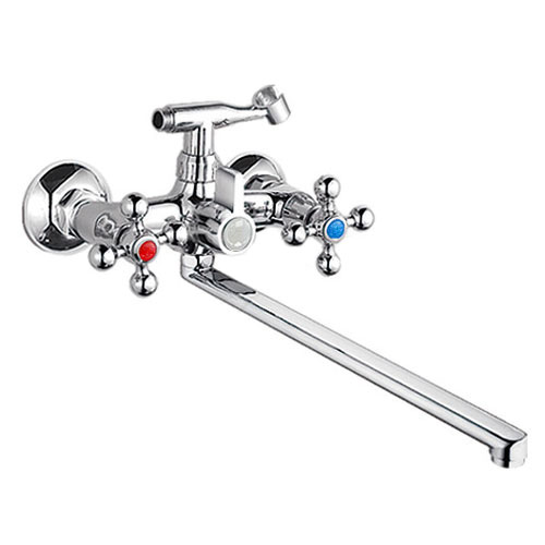 Двухвентильный универсальный смеситель для ванны с плоским изливом и переключателем для душа. Максимальное давление в системе водоснабжения 0.6 МПа. Рабочее давление 0.3 МПа.