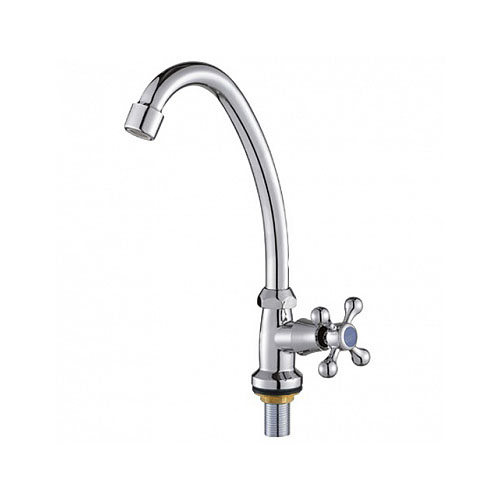 Смеситель настольный водоразборный для холодной воды. Крепление гайка. Максимальное давление в системе водоснабжения 0.6 МПа. Рабочее давление 0.3 МПа. Покрытие хром.