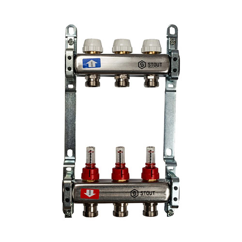 Главная страница Каталог товаров Арматура для котельной Коллекторы для теплого пола Stout Коллектор из нержавеющей стали с расходомерами Stout 3 выхода — купить в Ярославле