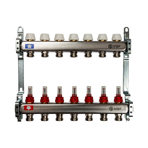 Главная страница Каталог товаров Арматура для котельной Коллекторы для теплого пола Stout Коллектор из нержавеющей стали с расходомерами Stout 7 выходов — купить в Ярославле