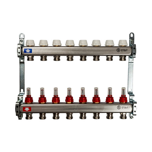 Главная страница Каталог товаров Арматура для котельной Коллекторы для теплого пола Stout Коллектор из нержавеющей стали с расходомерами Stout 8 выходов — купить в Ярославле