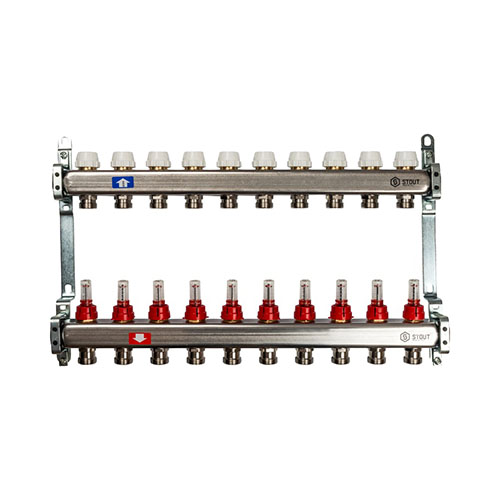 Главная страница Каталог товаров Арматура для котельной Коллекторы для теплого пола Stout Коллектор из нержавеющей стали с расходомерами Stout 10 выходов — купить в Ярославле