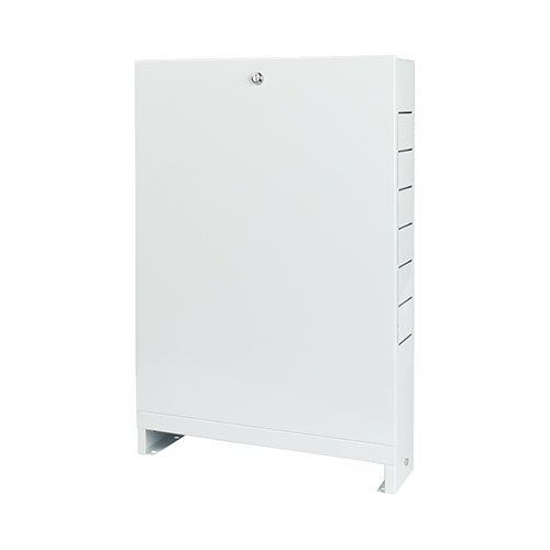 Коллекторный шкаф предназначен для установки в бойлерных жилых домов и технических помещениях зданий коммерческого назначения. Обеспечивает удобство размещения оборудования для разводки и управления системами водоснабжения и отопления. Изготовлен из оцинкованной стали, лицевые поверхности окрашены порошковой эмалью RAL9016. Шкаф устанавливается к стене. Выдвижные ножки позволяют регулировать высоту шкафа от 651 до 691 мм. В боковых стенках корпуса выполнена перфорация, сегменты которой удаляются в месте, удобном для пропуска присоединительных трубопроводов.