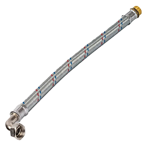 Гибкая подводка предназначена для подключения сантехнических приборов к системе холодного или горячего водоснабжения. Внутренний шланг изготовлен из пищевой резины и снаружи покрыт износостойкой оплеткой из нержавеющей стали. Высокое качество запрессовки втулки из нержавеющей стали к шлангу надежно защищает от протечек. Максимальный срок службы 10 лет.