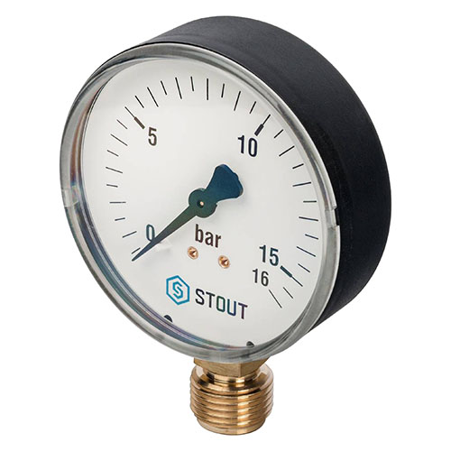 Главная страница Каталог товаров Термометры, манометры Манометры Stout Манометр радиальный Stout. Корпус Dn 80 мм, 1/2", 0-16 бар — купить в Ярославле