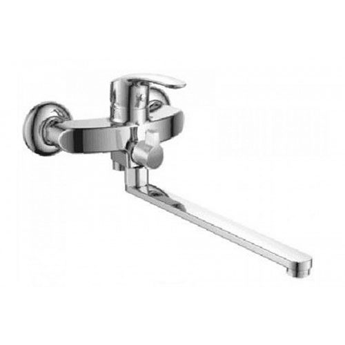 Однорычажный смеситель для ванны с длинным поворотным изливом. Аэратор отфильтровывает разнообразные примеси и обеспечивает равномерный поток и смягчение воды.