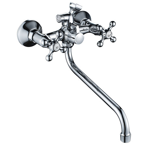 Двухвентильный смеситель для ванны с длинным поворотным изливом. Аэратор отфильтровывает разнообразные примеси и обеспечивает равномерный поток и смягчение воды. Оснащен качественной керамической кран-буксой.