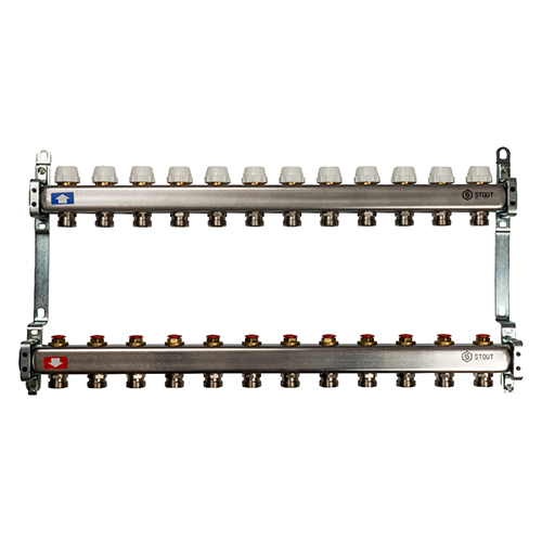 Главная страница Каталог товаров Арматура для котельной Коллекторы для теплого пола Stout Коллектор из нержавеющей стали без расходомеров Stout 12 выходов — купить в Ярославле