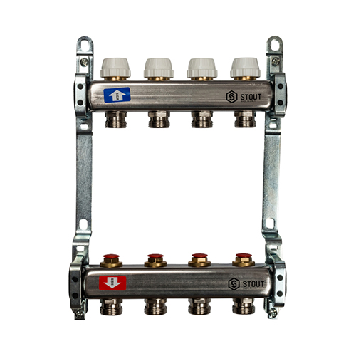 Главная страница Каталог товаров Арматура для котельной Коллекторы для теплого пола Stout Коллектор из нержавеющей стали без расходомеров Stout 4 выхода — купить в Ярославле