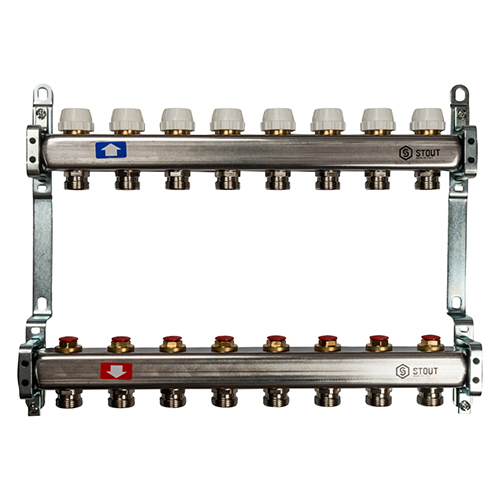 Главная страница Каталог товаров Арматура для котельной Коллекторы для теплого пола Stout Коллектор из нержавеющей стали без расходомеров Stout 8 выходов — купить в Ярославле