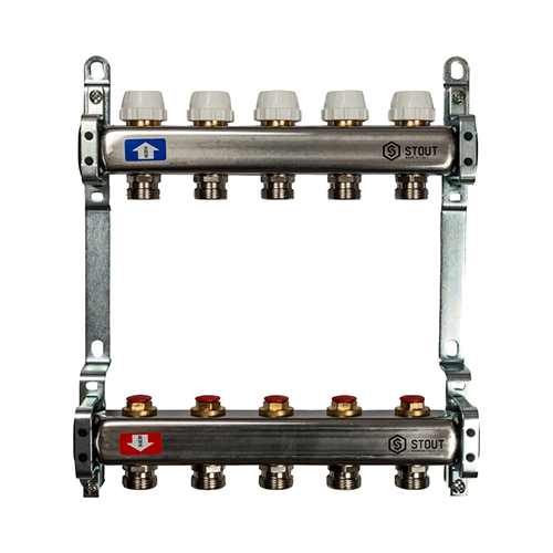 Главная страница Каталог товаров Арматура для котельной Коллекторы для теплого пола Stout Коллектор из нержавеющей стали без расходомеров Stout 5 выходов — купить в Ярославле
