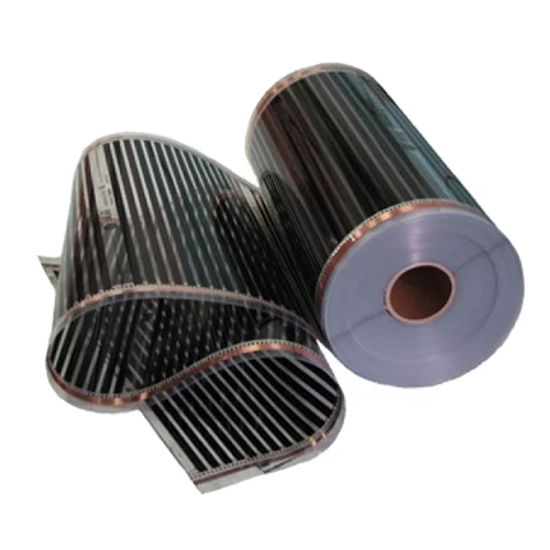 Пленочный теплый пол представляет собой нагревательный элемент — полосы из карбоновой пасты, расположенные между полупроводниками из меди и запаянные между двумя слоями полимерной плёнки из полиэтилентерефталата. Монтаж производится непосредственно под ламинат, линолеум, паркет. Для подключения применяются контактные клипсы типа «крокодил» и битумная монтажная лента, изолирующая место соединения.