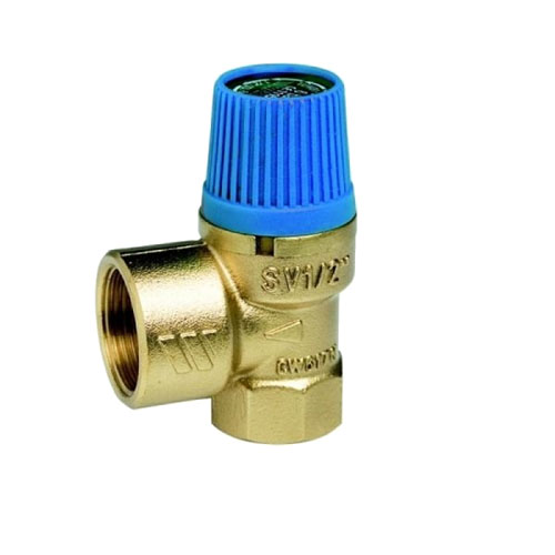 Предохранительный клапан для систем водоснабжения предназначен для предупреждения превышения максимального рабочего давления в системах отопления и водоснабжения. Конструкция представляет собой латуневый корпус, сбросное отверстие с внутренней резьбой, изготовленное больше присоединительного отверстия на один размер к системе (также с внутренней резьбой) и пружина из хромоникелевой стали. Запрессовка предохранительной крышки клапана защищает от смены настроек значения максимального выпускного давления. Перенастройка невозможна без вскрытия и нарушения целостности крышки. Устанавливается в любой плоскости под любым углом, как на котле (на наивысшей его точке), так и на подающем трубопроводе, на минимальном расстоянии от котла.