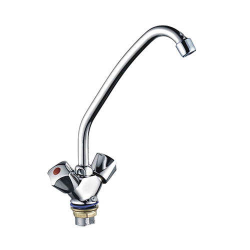 Двухвентильный смеситель для кухни с литым корпусом и высоким поворотным изливом предназначен для набортной установки на раковины, мойки и умывальники. Изготовлен из высококачественной латуни. Крепится на раковину с помощью крепежной гайки-шайбы.