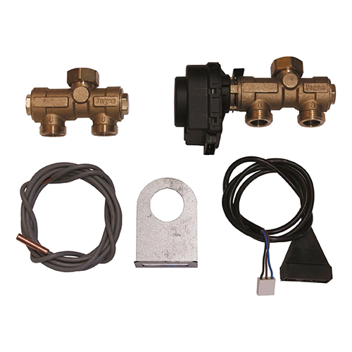Комплект с 3-ходововым клапаном Fugas для подключения к электрическому котлу бойлера косвенного нагрева. В комплекте: механическая часть 3-ходового клапана; распределительный элемент возвратного трубопровода; кабель для электродвигателя 3-ходового клапана с разъёмами; электродвигатель 3-ходового клапана; защитный хомут электродвигателя; защитный кожух разъёма; подключение: 3/4".