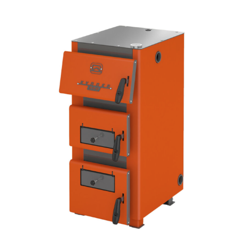 Твердотопливный отопительный котел мощностью 36 кВт, работающий на всех видах твердого топлива и рассчитанный на обогрев помещения площадью до 360 кв.м. Высокая эффективность работы достигается за счет подачи вторичного воздуха в камеру сгорания и водотрубной колосниковой решетке. В конструкции данной модели предусмотрена возможность быстрого переоборудования горелки на газовую или пеллетную. Время горения на одной закладке угля достигает 12 часов. Котел работает на давлении системы отопления до 3 атм.